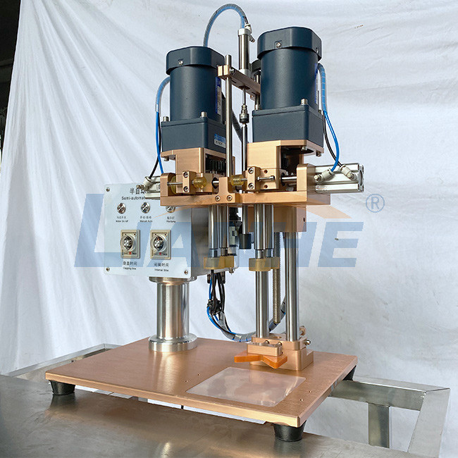 このデスクトップのおおう機械はフィートのペダルによって空気圧縮機によって、空気におおうこと手動で制御することができる制御される。この機械はまたアヒル ポンプ帽子に小さい精油のびんにことができる使用する使用することができる。ローラーはコロイド無水ケイ酸である、従って変えることができる。この機械はまたある用具を自由に提供する。