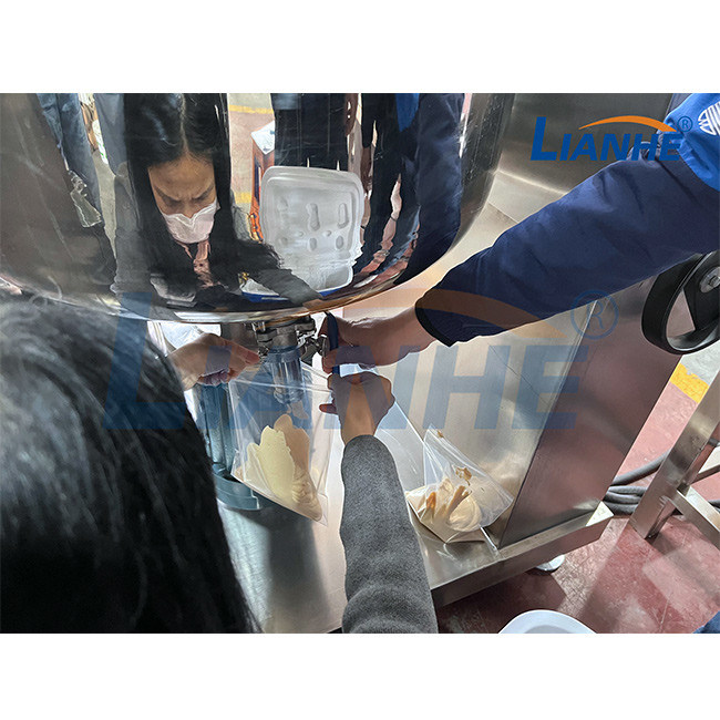 水段階タンクおよびオイル段階タンクの材料は熱され、かき混ぜられる。それらが完全に混合されていた後、真空ポンプによって乳状になるタンクに移る。材料は壁を掃除するPTFEのスクレーパーによって結合された中央かいの上部かき混ぜられるその間材料は完全にそして中央車軸の低い部品の乳化剤に押されるためにかき混ぜられる。非常に高速乳状になる効果によって、材料は200nm – 2um粒子に真剣に切られ、せん断され、そして割れる。泡はタンクの真空の状態でプロセスの間に吸われるすみやかに現われる